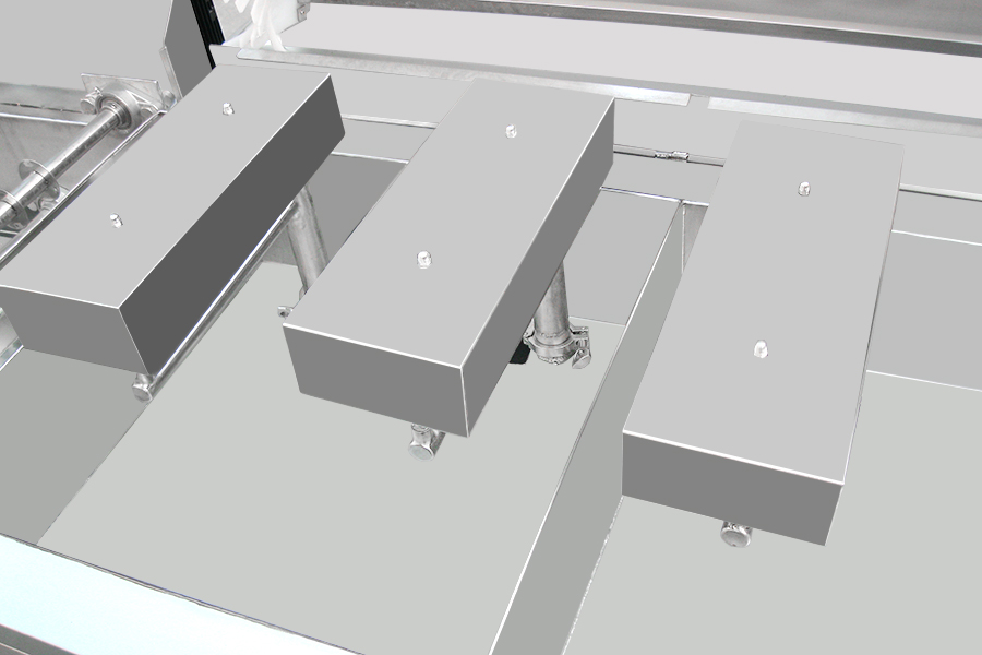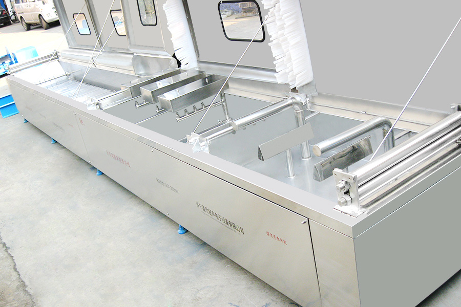 該設(shè)備有上下料網(wǎng)帶、超聲波清洗工位、噴淋漂洗工位、高壓風(fēng)切、熱風(fēng)烘干工位、溫控水加熱系統(tǒng)、風(fēng)機(jī)、溫控空氣加熱系統(tǒng)、移動式風(fēng)刀、PLC+觸摸屏控制系統(tǒng)、管路系統(tǒng)及智能電器控制系統(tǒng)等組成。自動進(jìn)排液和自動加溫系統(tǒng)完全實(shí)現(xiàn)了無人干預(yù),自動運(yùn)行,很大程度上降低了工人的勞動強(qiáng)度。先進(jìn)的霧氣處理系統(tǒng)可以將清洗時產(chǎn)生的霧氣冷凝回流,空氣經(jīng)過濾和活性炭吸附后排出。